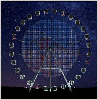 Наличие аттракциона «Колесо обозрения «Пять звёзд» высотой 50 метров создает атмосферу гостеприимства и радости. Ярко иллюминированное в вечернее и ночное время колесо обозрения притягивает взгляды и дарит людям радостные эмоции. Это обязательно отразится на образе города.