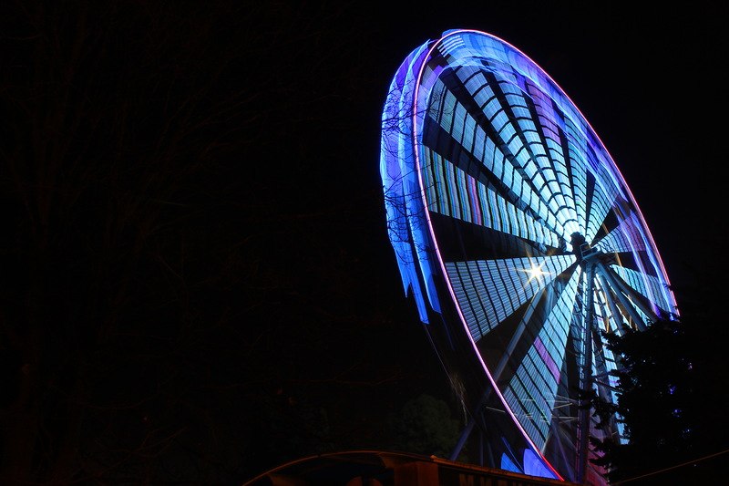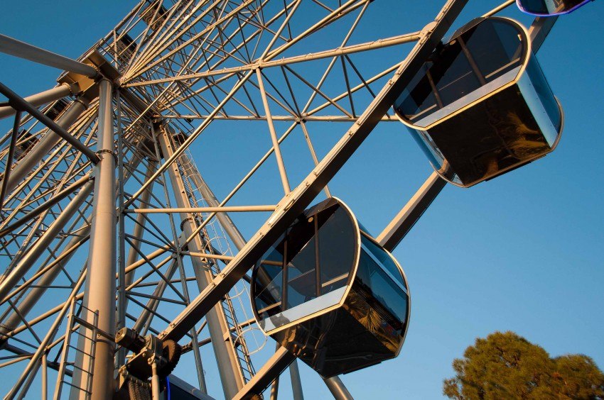 Конструкция этого колеса не требует специального фундамента за счет использования наземного каркаса, позволяющего равномерно распределить нагрузку по всей площади, занимаемой аттракционом