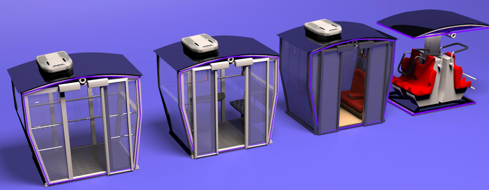 На колесе обозрения расположены от 14 до 28 кабинок вместимостью 4-6 человек, снабженные системой автоматического открывания, а также системой кондиционирования и обогрева воздуха.